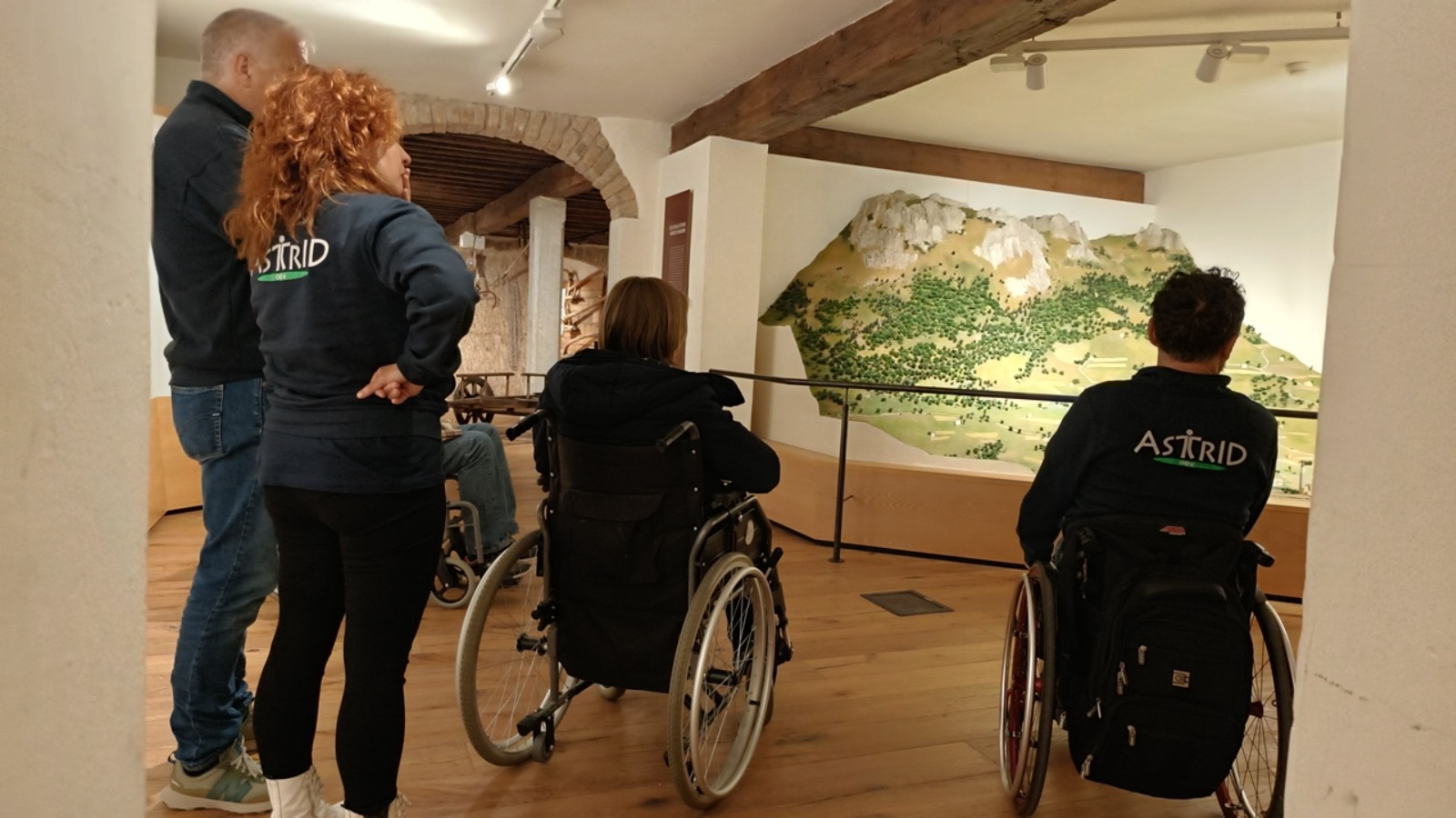 AsTrID ha accompagnato i visitatori nella prima sezione del museo, dedicata all’agricoltura tradizionale, proponendo un percorso da vivere in sedia a rotelle, per sperimentare le difficoltà del muoversi con un ausilio in spazi non sempre pensati per tutti.